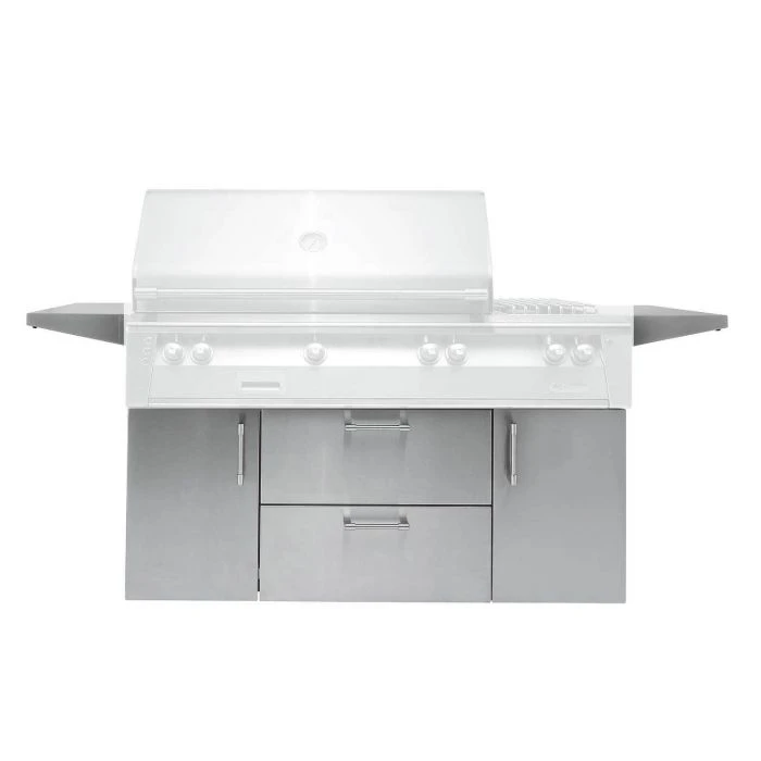 Alfresco XE-56C Deluxe Cart for 56-Inch Grill provides a heavy-duty cart to transform your built-in grill to a freestanding grill. This high quality cart features durable 304 stainless steel, double doors and double drawers, side shelves, (4) casters, and precision lighting. It is designed for Alfresco’s ALXE 30-inch grill head. Cart Only. Grill head NOT included.