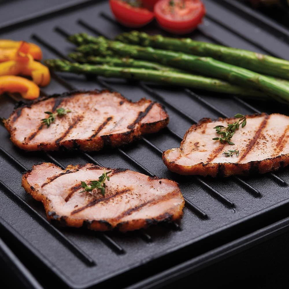 - Premium Construction – Reversible, heavy duty cast iron griddle with matte porcelain coating has one smooth side for frying, while the other side is ribbed for searing