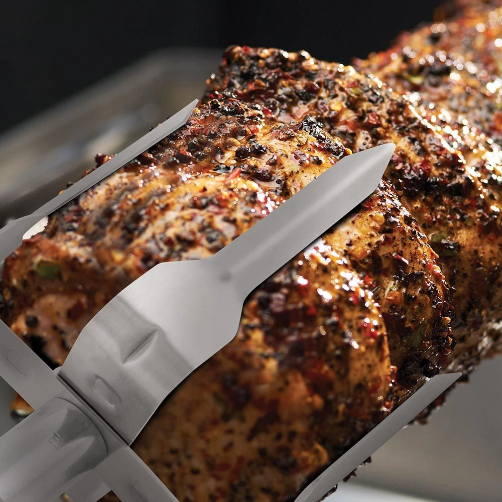 - Includes – Holds food securely for better rotisserie grilling