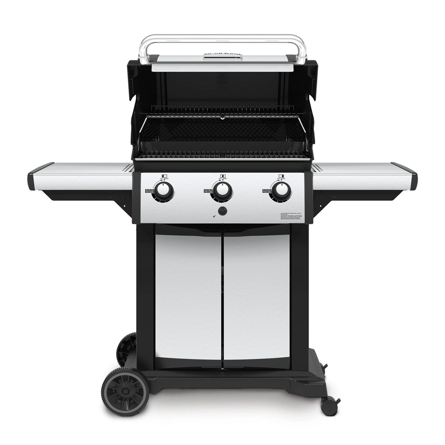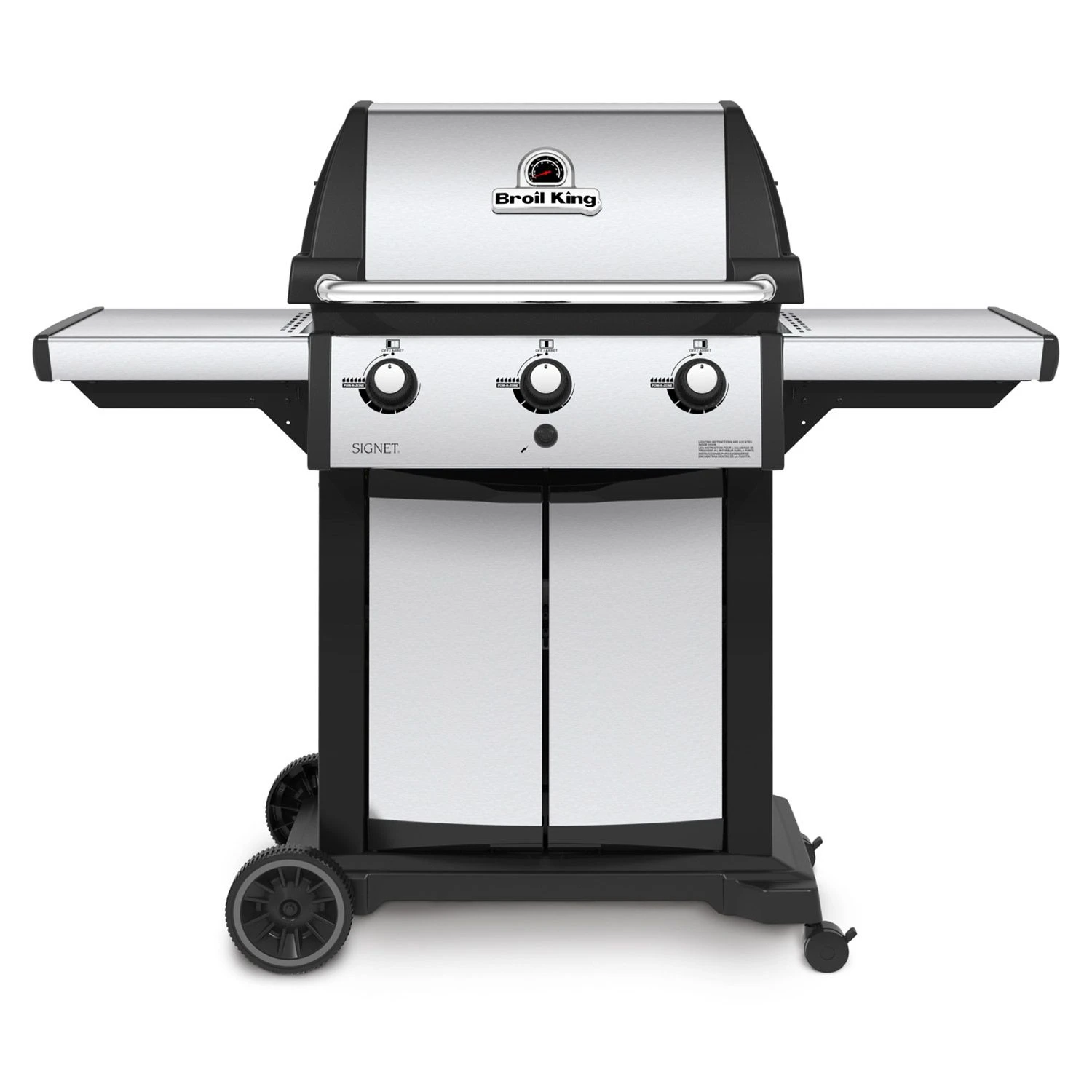 Broil King SIG-320 Signet 320 3-Burner Grill on 2-Wheel Cart, 25.5-Inches offers a premium grilling experience for your outdoor kitchen. This grill features die-cast aluminum and high-grade stainless steel construction for proven durability and excellent heat retention. Heavy-duty cast iron cooking grids feature a pointed side for perfect steakhouse sear marks and a grooved side for continuous basting. The stainless steel Flav-R-Wave cooking system offers impressive heat distribution across the entire surface of the grill, while drippings that fall onto the Flav-R-Wave system are instantly vaporized. Three Dual-Tube burners feature high quality, heavy-duty stainless steel construction with a tube-in-tube, side-ported design for even heating. Linear-Flow valves with 180-degree Sensi-Touch control knobs offer smooth and simple heat control to precisely control the temperature of your grill.