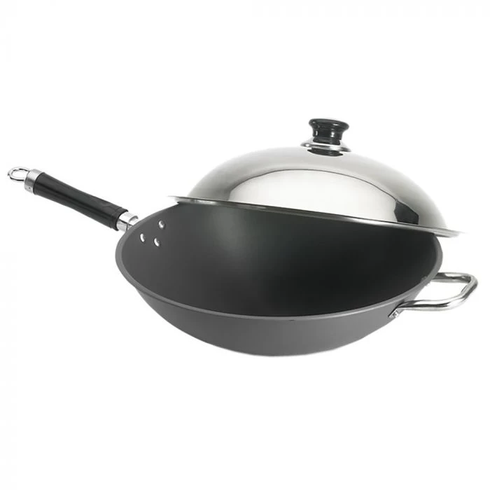 - Large Capacity – Wok measures 14″ wide and 5″ deep to accommodate a large stir fry