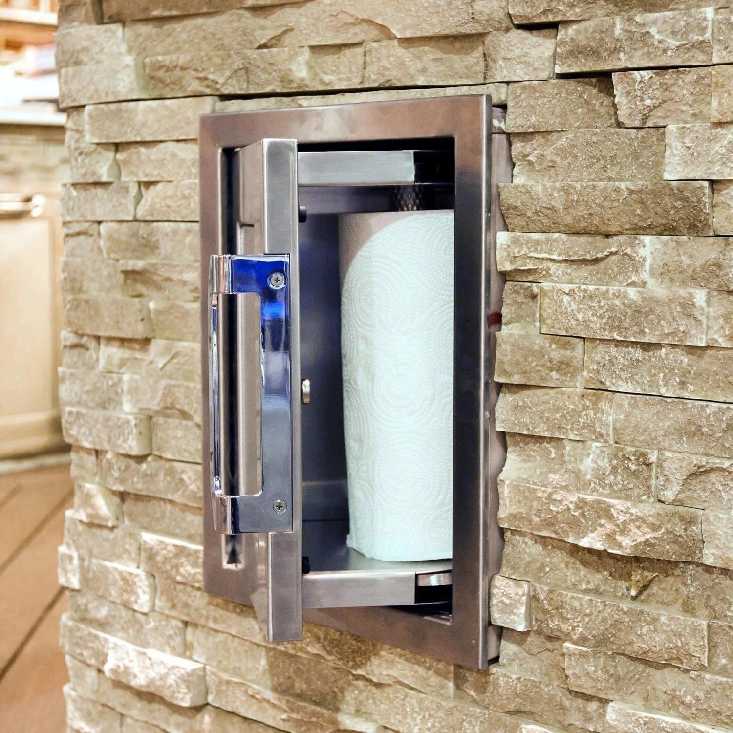 Hestan AGPTD16 Paper Towel Dispenser, 16-Inches provides a high quality grill component to complete your perfect outdoor kitchen. This paper towel dispenser can be mounted horizontally or vertically, can fit standard paper towels rolls, and features a welded stainless steel construction for a blend of style and durability that will stand up to the outdoor elements. With a marquise accented stainless steel cover, this accessory beautifully complements the beauty and function of the Hestan line.