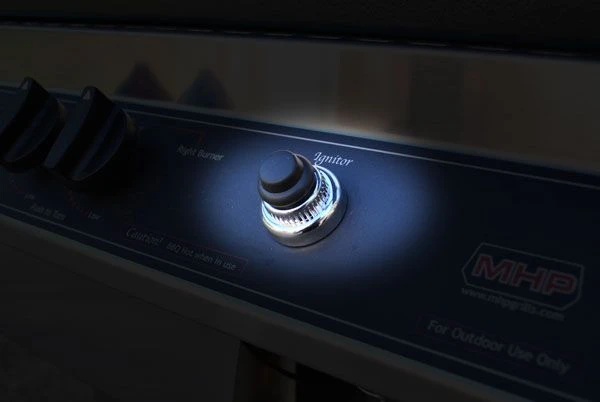 Modern Home Products WNK4 Gas Grill On Cart, 27-Inch offers a premium standing gas grill option that combines hand-crafted, high quality materials with superior function and timeless tradition. The grill features cast aluminum construction to provide a durable housing and grill bottom that promotes heat retention and rust resistance while the rolling Sta-Kool stainless steel hood handle makes opening your grill a breeze. This unit includes 5/16-inch thick stainless steel grids and a secondary warming rack or can be upgraded to include two aluminum rust-free SearMagic grids and a SearMagic warming rack. The reversible SearMagic technology is characterized by one wide-ribbed side for achieving professional sear lines and one smooth side for foods such as fish or vegetables. The H-shaped dual burner along with the FlavorMaster porcelain briquettes work together to create 40,000 BTU of power and provide precise heat control for the perfect BBQ flavor. The on-cart grilling option offers the 27-inch gas grill head on a freestanding aluminum cart with two wheels. You also have the option to pair your grill with a 4-wheeled (2 casters) black aluminum or stainless steel column. All of this, in addition to the 433 square inches of main cooking area, two added stainless steel side shelves and built-in temperature gauge, makes it is easy to see why the versatile WNK4 from MHP is the brand’s most popular grill. Upgrade your grill with a SearMagic Infrared Zone Side Burner, Stainless Steel Side Burner or Infra-Roast Rear Rotisserie Burner.